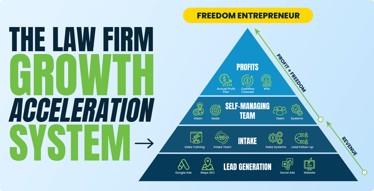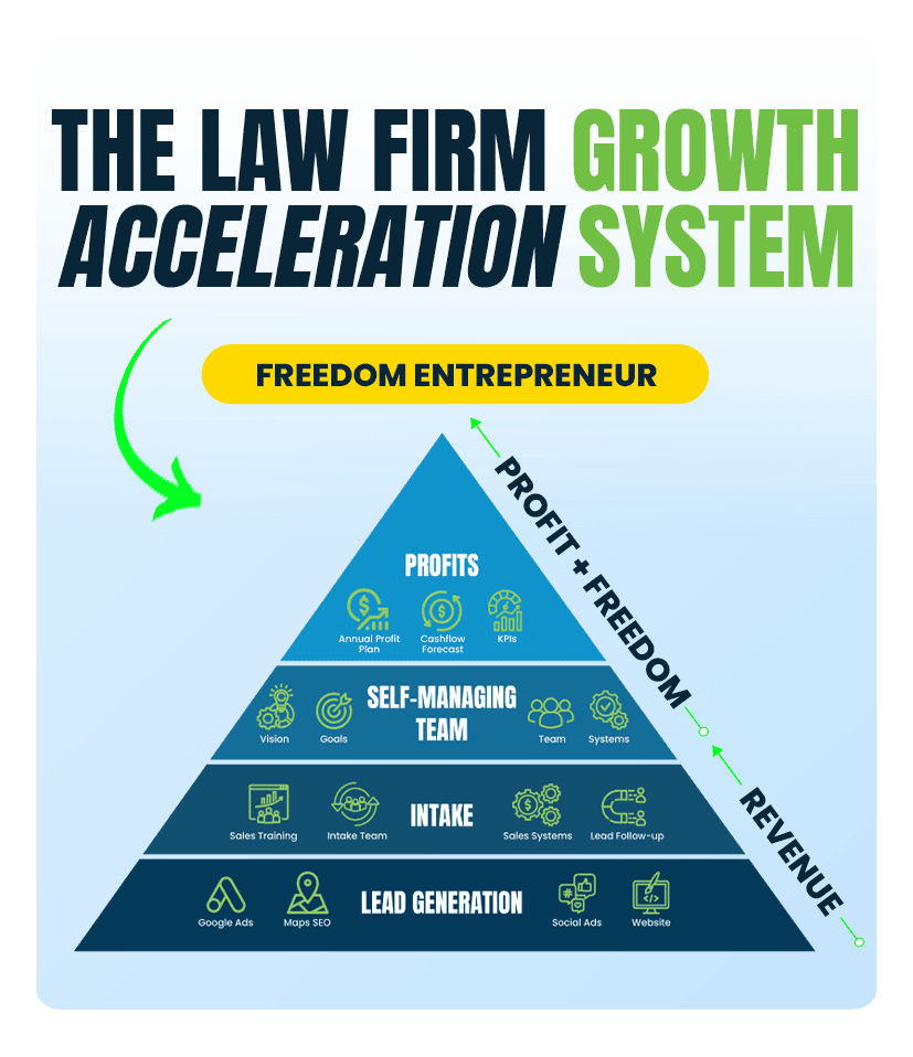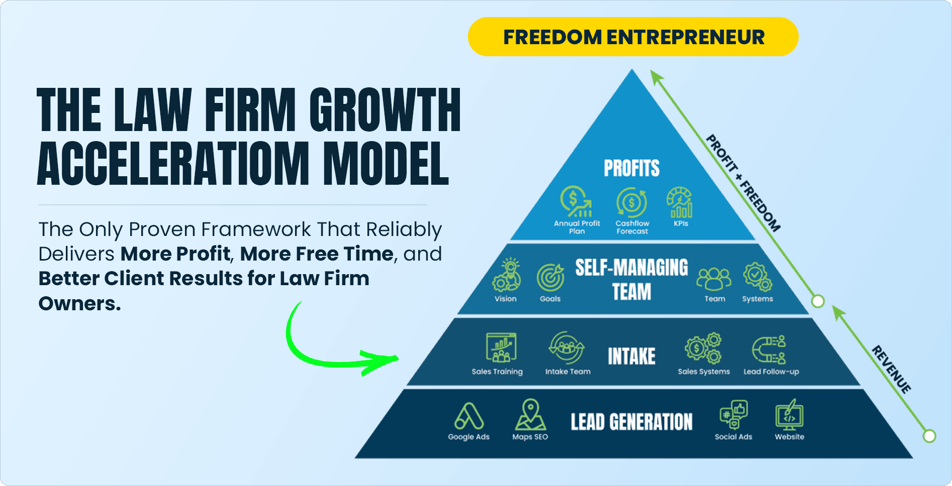 The Law Firm Growth Acceleration Model — the only proven framework that reliably delivers more profit, more free time, and better client results for law firm owners.